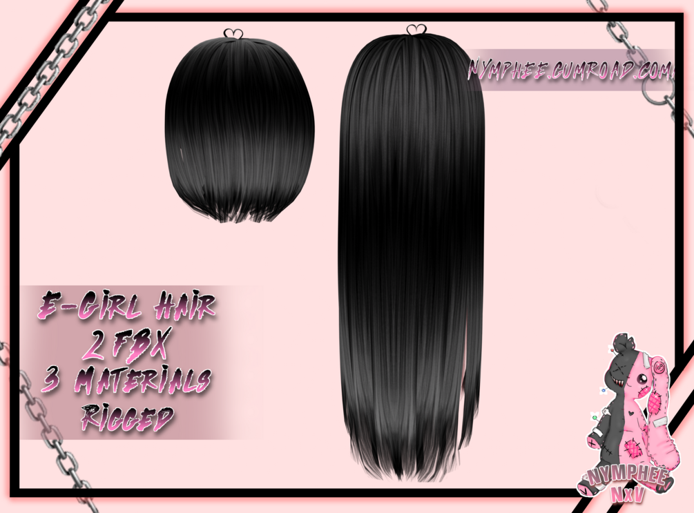 E-Girl Hair Pack made from scratch in Blender. Please have Blender and Unity Knowledge in order to properly use and set up the Hairs. Hair Textures (other than the babyhairs) are not provided in the files.