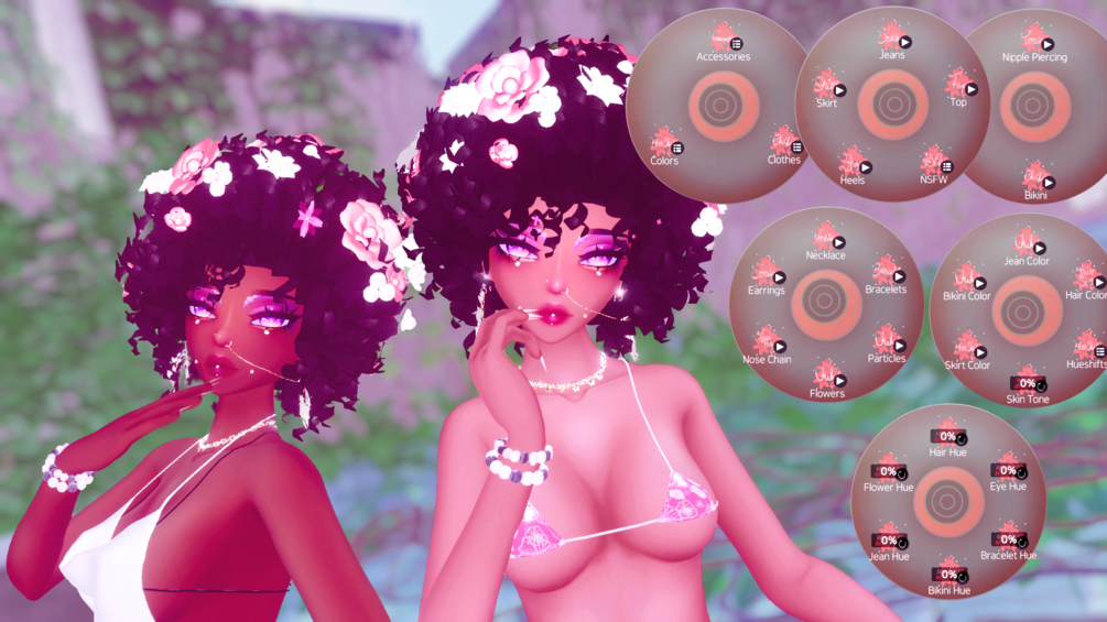 ❥ Accessories: Earrings, Necklace, Bracelets, Nose Piercing, Flowers in hair, Flower Particles, Nipple piercing