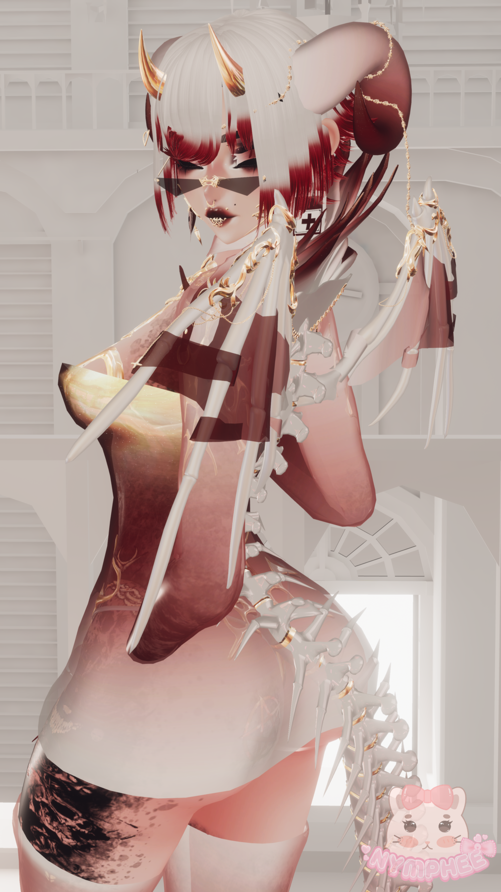 Base | | Coochie | DPS Setup | GoGo Locomotion | Icons | Wings | Anklet/Rings | Coat | Fluffy Hair | Cyber Assets | Cyber Queen asset | Tail | Dress/Heels/Socks/Horns/Top/ Glasses| Face Texture | Face Jewelry | Lip Ring | Earrings | Tattoo